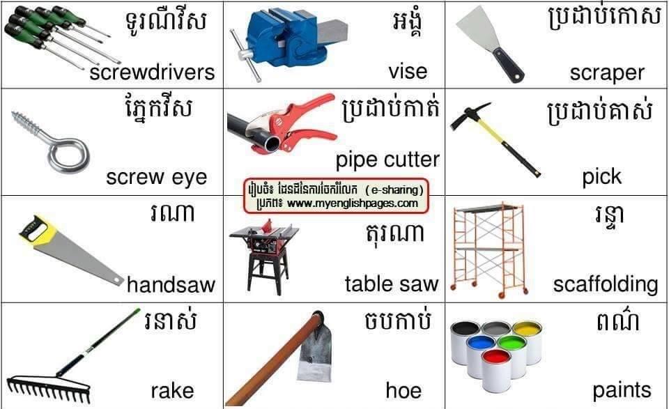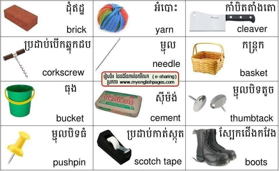 ស្វែងយល់សំភារះទូទៅជា ភាសារអង់គ្លេស